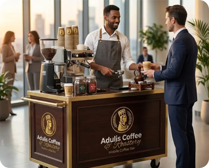 Adulis Coffee Catering delivers premium mobile espresso service throughout Northern Virginia, including Arlington, Alexandria, Tysons, Reston, Fairfax, and Falls Church. We specialize in polished corporate events and executive gatherings.